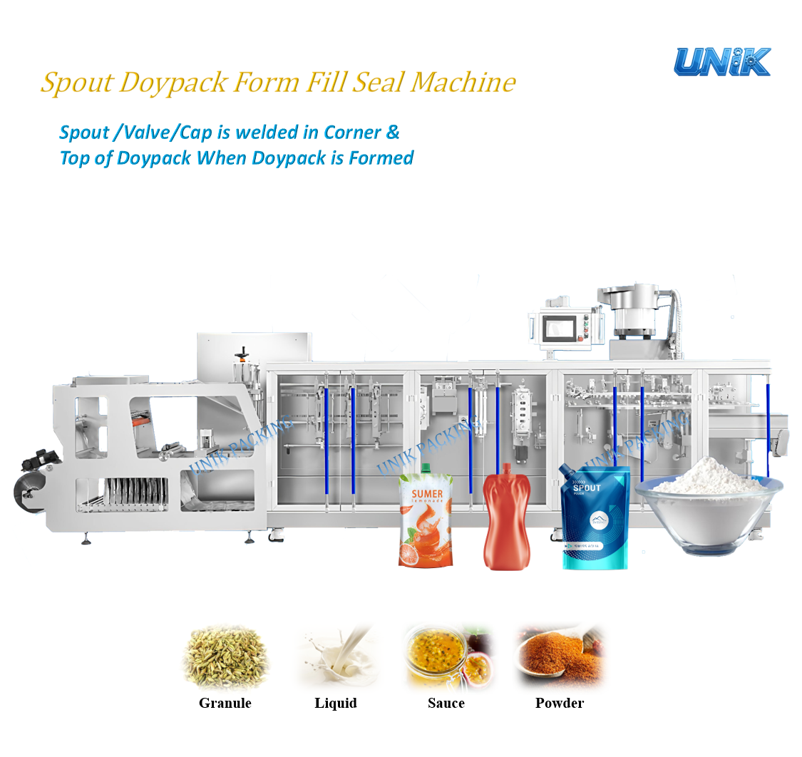 Standup Pouch Form Fill Seal Machine is specially deisgned for Standup Pouch, It can form pouch from lamination roll, after form, fill, seal work, Machine produces a full Stand Pouch. Machine can also do different shape with mould and chanovers. Standup Pouch Form Fill Seal Machine can be customzed by your ideas as normal stand pouch, valve pouch, Curved shape Pouch etc.